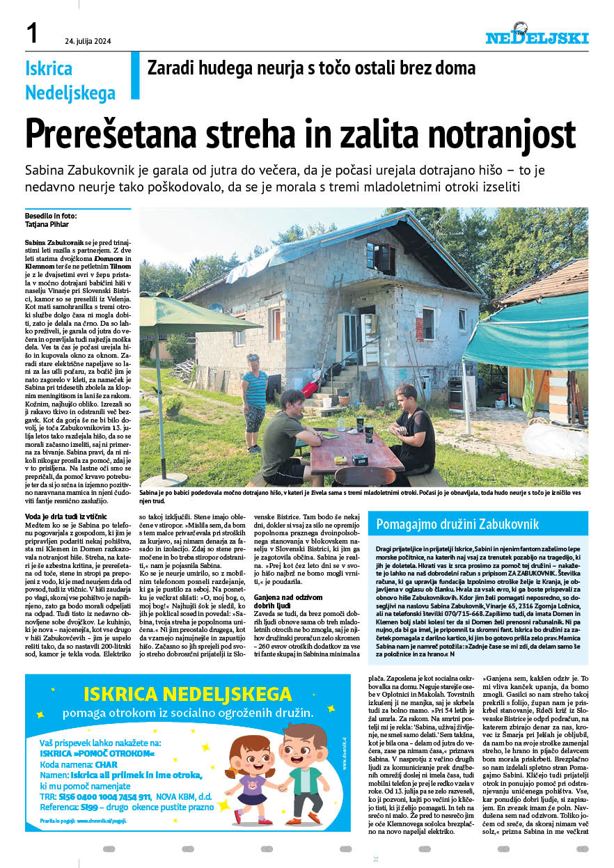 Sem Sabina Zabukovnik, mama samohranilka s tremi mladoletnimi otroki, starejši sin ima 17 let, mlajša dvojčka pa 15. Živeli smo v stari hiši, ki sem jo podedovala po babici vse do sobotnega usodnega dne.